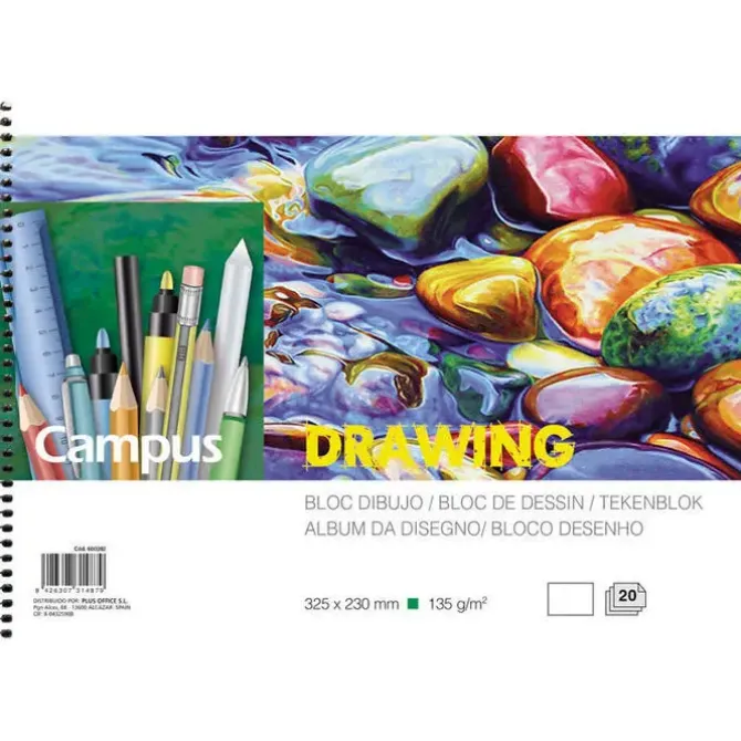 Bloc dibujo con el muelle en el lado corto apaisado, para que no ter moleste el muelle al dibujar.