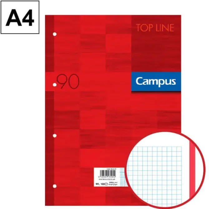 CAMPUS RECAMBIO A4 100H 90G 4TAL.CN5MM ROJO 002297 MAK002297