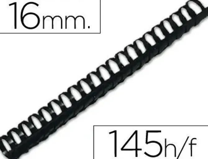 CANUTILLO Q-CONNECT REDONDO 16 MM PLASTICO NEGRO CAPACIDAD 145 HOJAS CAJA DE 50 UNIDADES