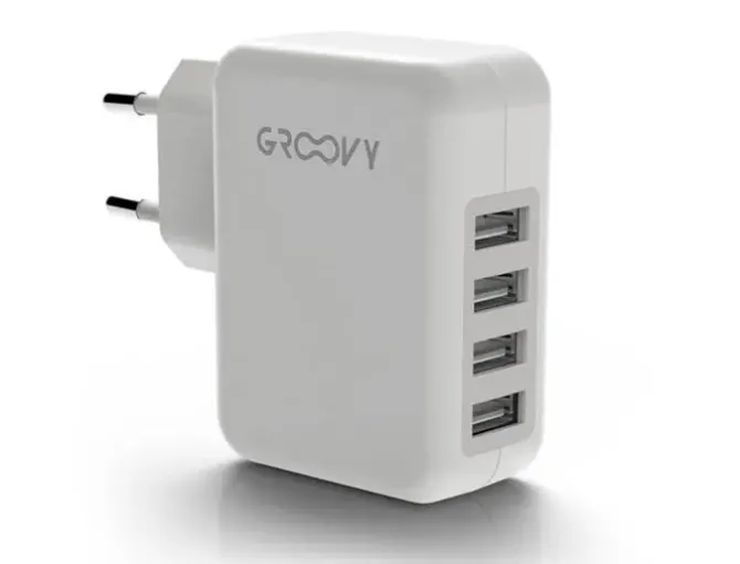 CARGADOR DE PARED GROOVY 4 USB COLOR BLANCO