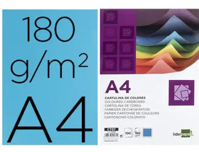 CARTULINA LIDERPAPEL A4 180G/M2 AZUL PAQUETE DE 100