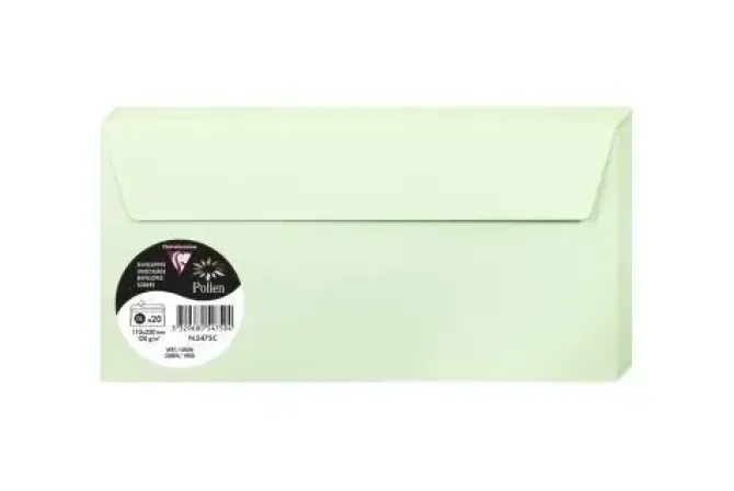 CLAIREFONTAINE PAQUETE 20 SOBRES COLOR POLEN VERDE 110X220MM. 120 G. REF.5475C