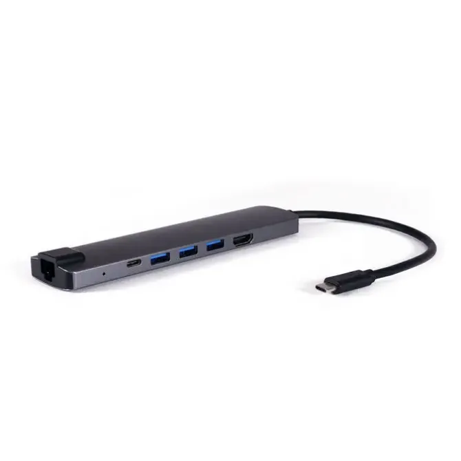 -9 puertos: RJ45 (Ethernet Gigabit), HDMI, 3 x puertos USB 3.0 (USB-A), microSD, SD, USB-C datos y USB Tipo-C Power Delivery