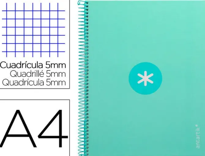 CUADERNO ESPIRAL LIDERPAPEL A4 MICRO ANTARTIK TAPA FORRADA 80H 90 GR CUADRO 5MM 1 BANDA 4 TALADROS MENTA