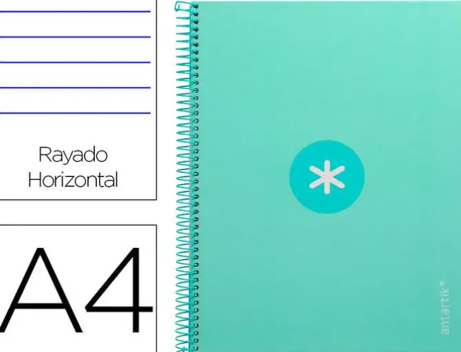 CUADERNO ESPIRAL LIDERPAPEL A4 MICRO ANTARTIK TAPA FORRADA80H 90 GR HORIZONTAL 1 BANDA 4 TALADROS COLOR MENTA