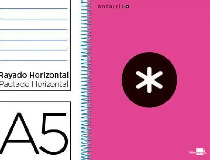 CUADERNO ESPIRAL LIDERPAPEL A5 MICRO ANTARTIK TAPA FORRADA 120H 100 GR HORIZONTAL 5 BANDAS 6 TALADROS COLOR ROSA