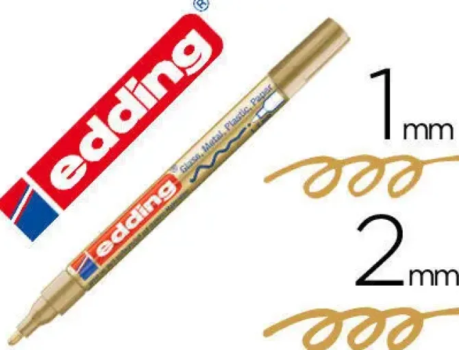 Dibujar y decorar superficies lisas nunca ha sido tan fácil como con los marcadores de tinta opaca edding. Con la punta suave y redonda del marcador, de 1 -2 mm de grosor, podrá crear inscripciones y motivos decorativos detallados sobre superficies de vidrio, bolas de árbol de Navidad, botes de galletas o cajas de almacenamiento. Su tinta opaca ofrece una gran cobertura y es extremadamente duradera.