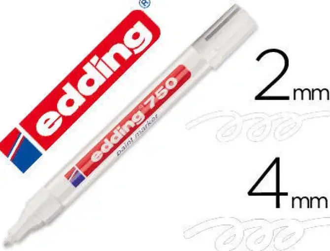 EDDING 750 MARCADOR PERMANENTE TINTA OPACA PUNTA CONICA TRAZO 2 – 4 MM BLANCO REF. 750-049 930750-9 CS75357