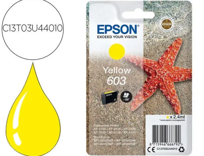 Disfruta de copias fiables, nítidas y de colores vivos con una inversión mínima gracias a la tinta 603 de cuatro colores de Epson. Con la combinación de tintas negras pigmentadas y de colores de tipo colorante, este pack de tintas crea copias definidas y llenas de color.
