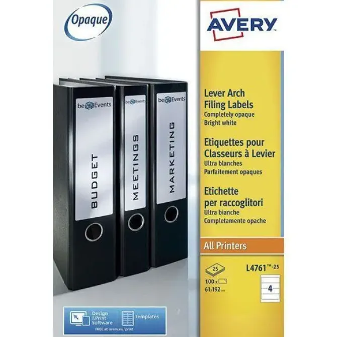 ETIQUETA LOMERA AUTOADHESIVA AVERY LOMO ANCHO 192X61 MM 4 ETIQUETAS X HOJA PAQUETE DE 25 HOJAS
