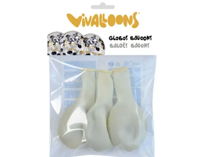 GLOBO 100% LATEX BIODEGRADABLE CRISTAL CONFETTI METALIZADO BOLSA CON SOLAPA DE 3 UNIDADES