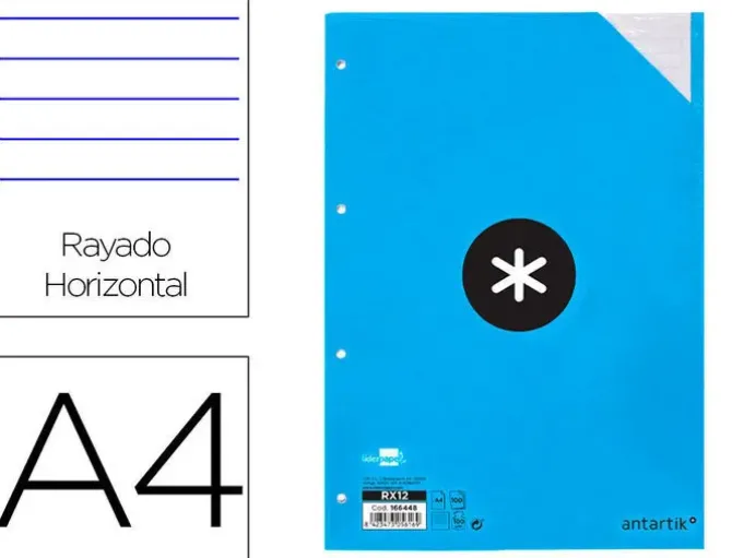 RECAMBIO LIDERPAPEL A4 100 HOJAS 100G/M2 CUADRO 5 MM 4 TALADROS BANDAS DE 5 COLORES ANTARTIK