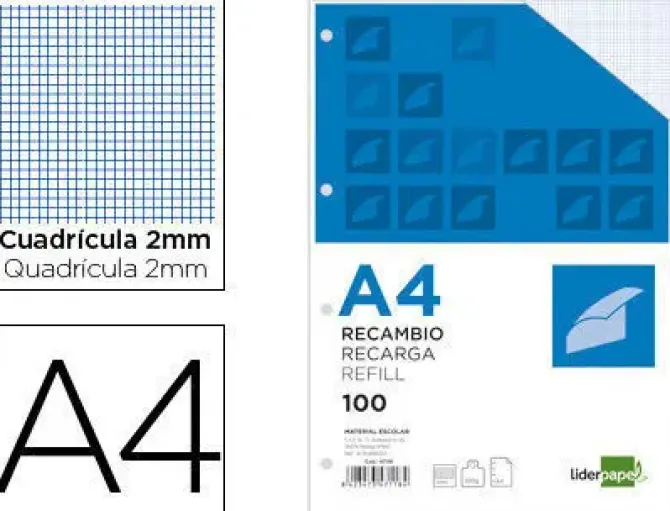 LIDERPAPEL RECAMBIO FOLIO 100H 100GR MILIMETRADO 2MM CS47118 RA04