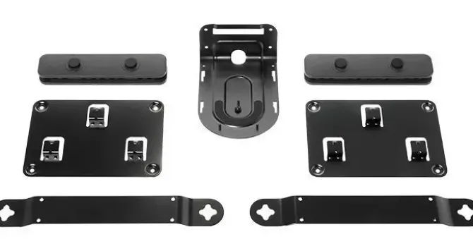 Cada accesorio del kit de montaje de Rally está adaptado al componente correspondiente del sistema. Los dos soportes para montar los altavoces Rally a ambos lados de la pantalla crean una sensación flotante y favorecen el potencial acústico de los altavoces. El resultado: conversaciones con un sonido genuino que acerca a los participantes mediante una tecnología discreta.