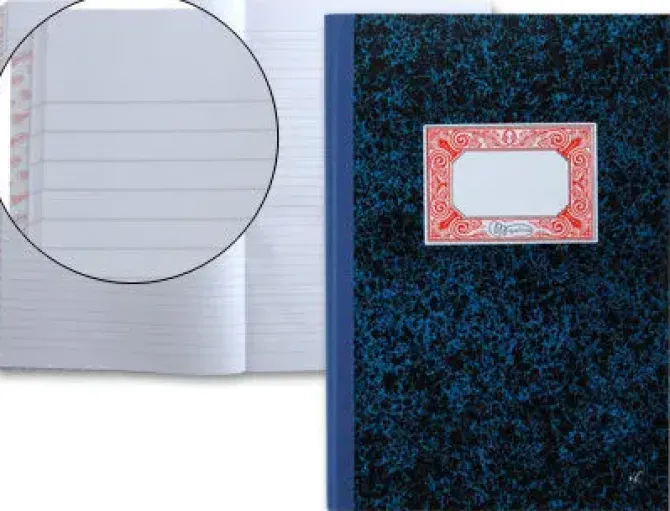 -Cubiertas de cartón contracolado con papel jaspeado y etiqueta vintage