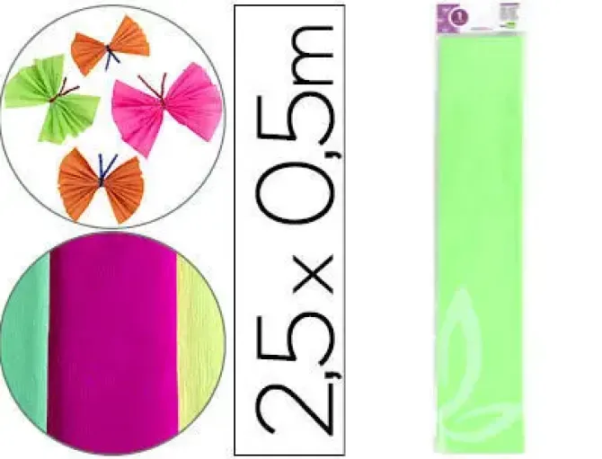 PAPEL CRESPON LIDERPAPEL 50 CM X 2,5 M 34G/M2 VERDE FLUORESCENTE