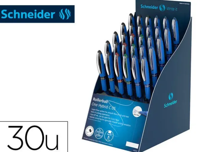 ROLLER SCHNEIDER ONE HYBRID PUNTA CONICA 0,5 MM EXPOSITOR DE 30 UNIDADES COLORES SURTIDOS 168X315X218 MM