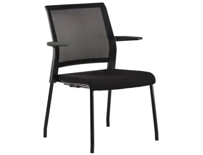 SILLA ROCADA CONFIDENTE BRAZOS FIJOS ESTRUCTURA METALICA ASIENTO TELA IGNIFUGA NEGRO RESPALDO MALLA