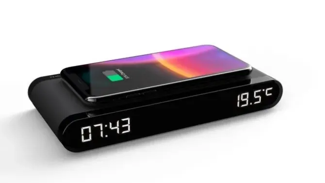 ¡Disfruta de un radio despertador 2 en 1! Aquí tienes un despertador Thomson CT550I compacto, elegante y muy útil. Muestra la hora, muestra la fecha, muestra la temperatura interior, carga tu smartphone por inducción o mediante USB-C o USB-A. Si prefiere dormir profundamente en la oscuridad, puede reducir el brillo de la pantalla digital. ¡Y todo esto en el mínimo espacio!