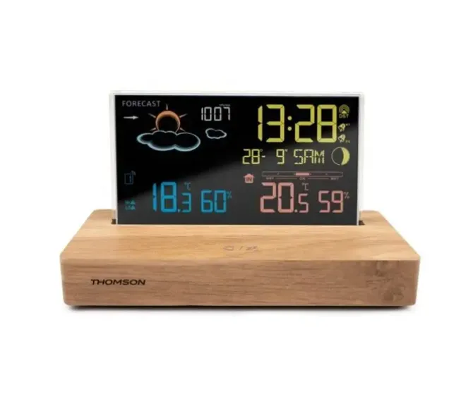 -Reloj despertador/estación meteorológica con pilas (2xAAA no incluidas) o fuente de alimentación USB-C