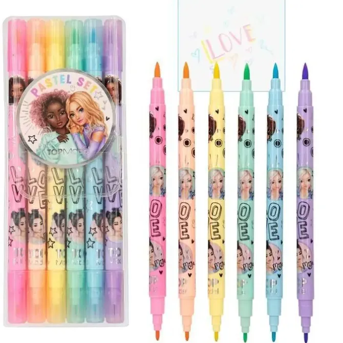 TOP MODEL ROTULADORES PASTEL PUNTA NORMAL + PINCEL 6 ROTULADORES