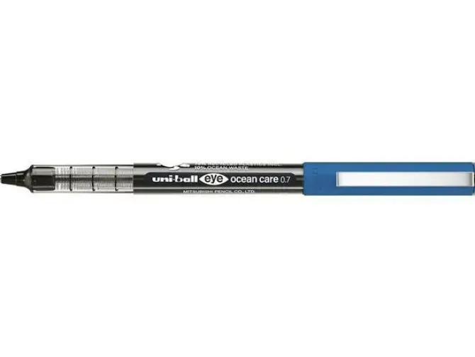 Uni-ball Eye roller Ocean Care, mediano, negro Fabricado con un 75 % de plástico reciclado, del cual un 10 % de residuos marinos Punta de acero inoxidable Con nivel de tinta visible Tinta pigmentada Resistente al agua y a la luz No recargable
