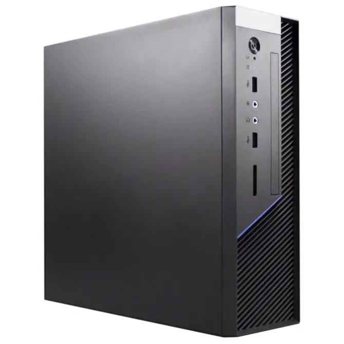 Tiene un diseño moderno y elegante, en el que destaca su frontal innovador con una franja en color azul diferente al resto de elementos. Respecto al chasis de acero, presenta una estructura compacta, pero con el espacio bien distribuido y capaz de albergar hasta 2 discos duros, un ventilador y una tarjeta gráfica de hasta 160mm.