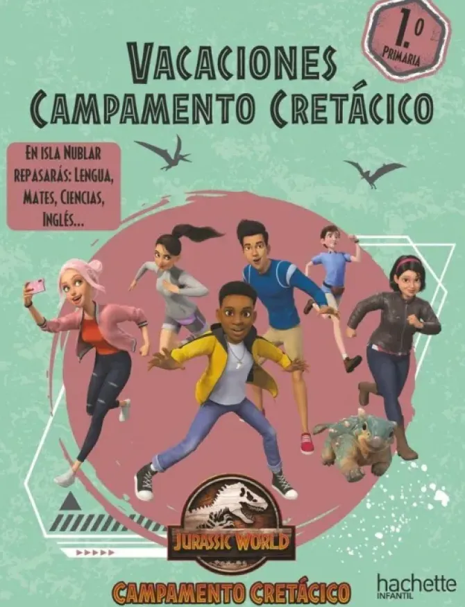 Este cuaderno de vacaciones está basado en la serie Campo Cretácico, de gran éxito en Netflix. En él, los protagonistas de la serie son el hilo conductor, ya que sirven para identificar cada área de los cuadernos: Lengua, Matemáticas, Ciencias de la Naturaleza, Ciencias Sociales, Inglés y Educación artística. Las actividades están pensadas para que los chavales repasen con alegría de la mano de sus personajes favoritos.